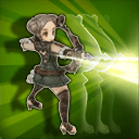 | Description | Quickly fires a number of arrows at the targeted area. | Allows you to attack while moving quickly and slightly increasing evasion. Character's evasion will affect how fast they can move while attacking. | Fires an arrow that bounces off of the target to hit up to 3 adjacent enemies. The arrow only bounces if it deals damage to the target. | Shoot 2 arrows to enemy at once. | Concentrate to momentarily increase your accuracy. While active, will detect [Cloaked] enemies nearby. | Perform a backward leap. You are immune to damage while leaping. Jump distance depends on skill level and character's evasion. |